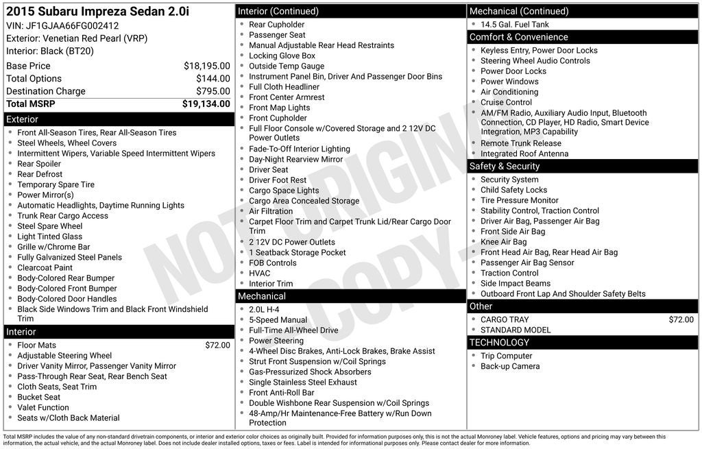 - Vehicle Name: Subaru Impreza Sedan