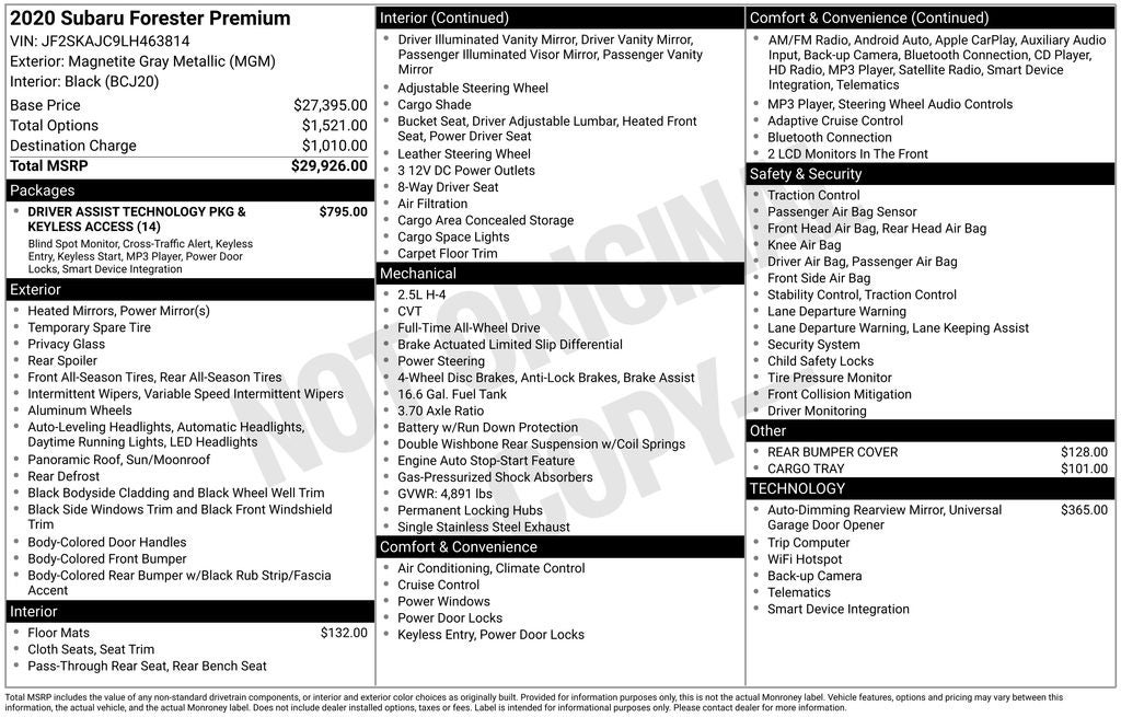 - Vehicle Name: Subaru Forester