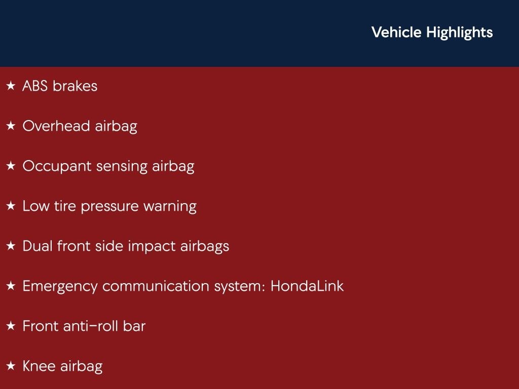 - Emergency SOS Capable HondaLink emergency SOS system via mobile device