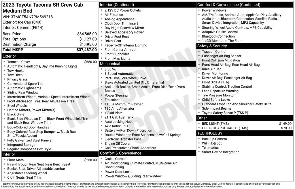 - Vehicle Name: Toyota Tacoma 4WD