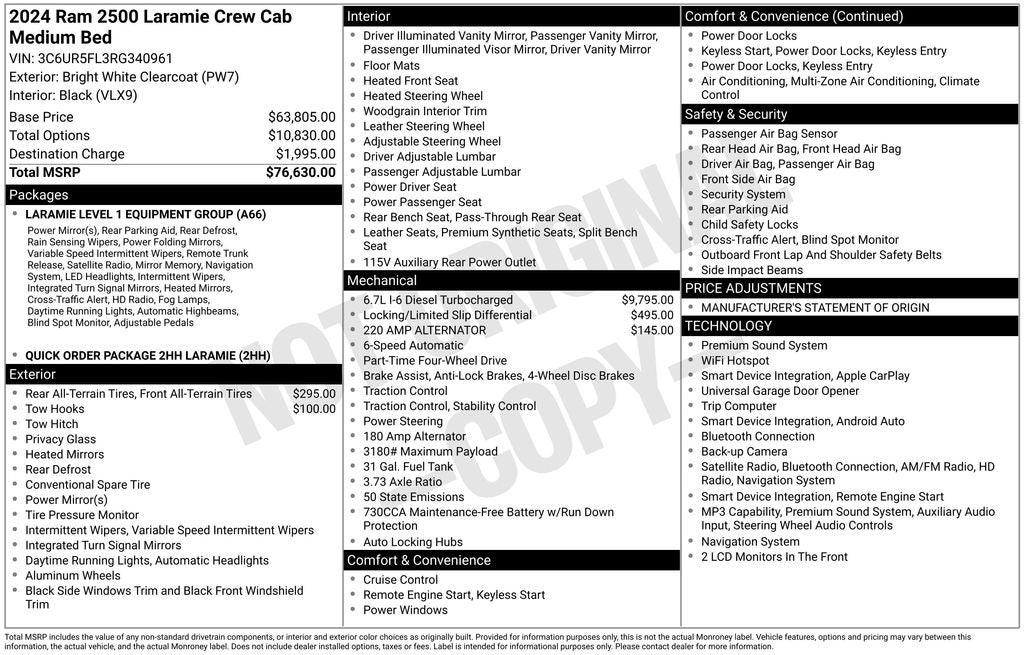 Bright White Clearcoat 2024 Ram 2500 Laramie 4WD 6-Speed Automatic Cummins 6.7L I6 Turbodiesel