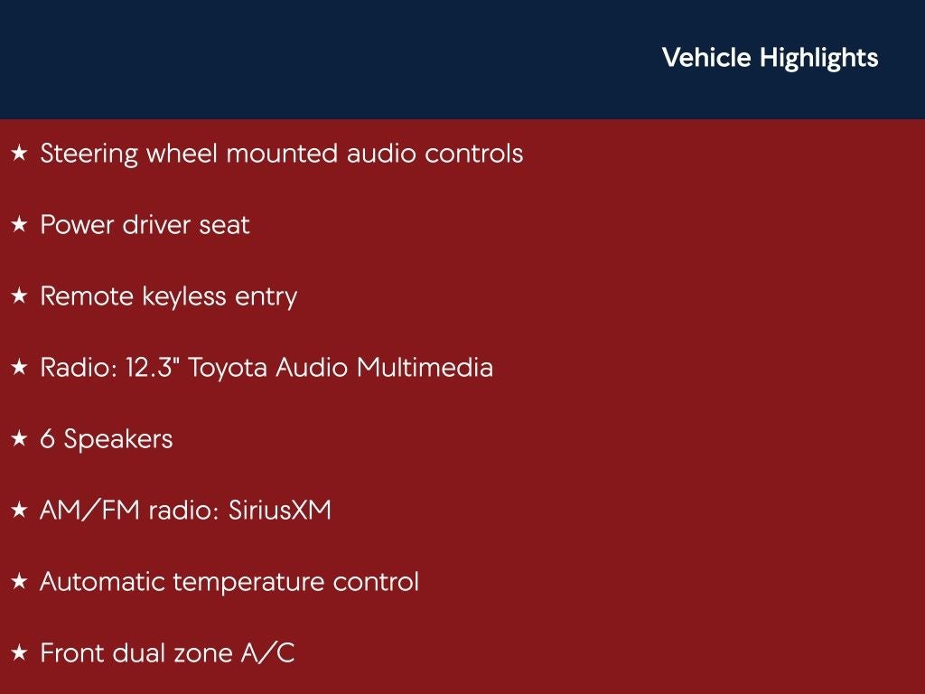 - Radio: 12.3" Toyota Audio Multimedia